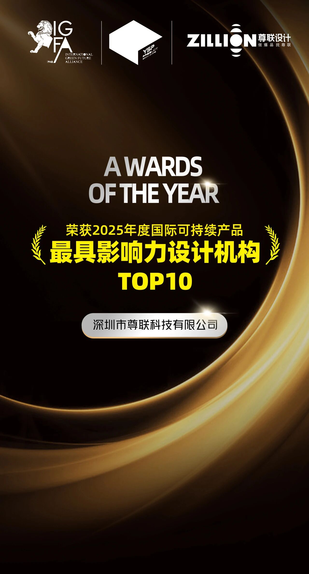 尊联设计荣获"2025国际可持续产品TOP10更具影响力设计机构"